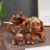 Mother and Baby Elephant Statue Resin Animal Sculpture for Family Desk Decoration Imitation Wood Grain