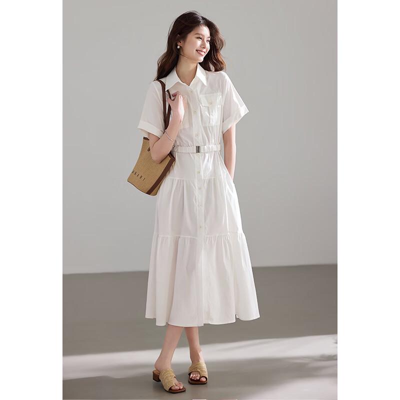 VICTORIA&VERA Lapel Belted Short-Sleeve Long Dress