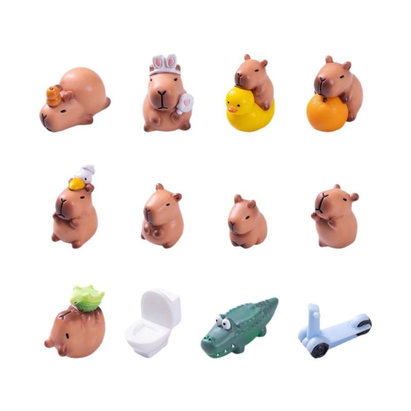 Mini Resin Capybara Miniatures Figurines 2Pcs Cute Fairy Garden Animal Ornament Mini Statue Decorative Small Landscaping