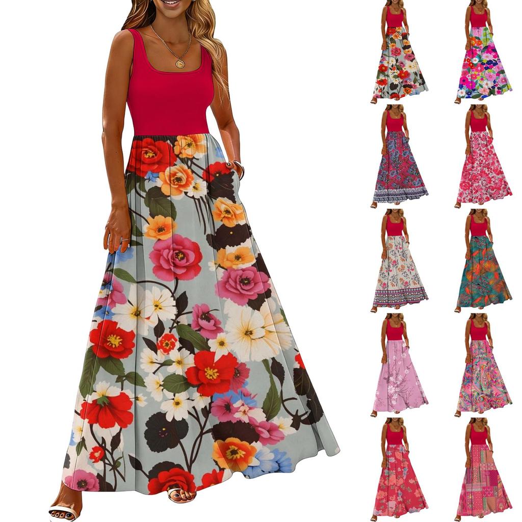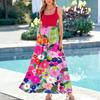 Ladies' floral print summer casual and fashionable sleeveless long dress