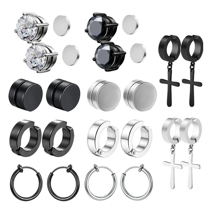 10 Pairs Magnetic Stainless Steel Cross Stud Earrings (No Piercing Required)