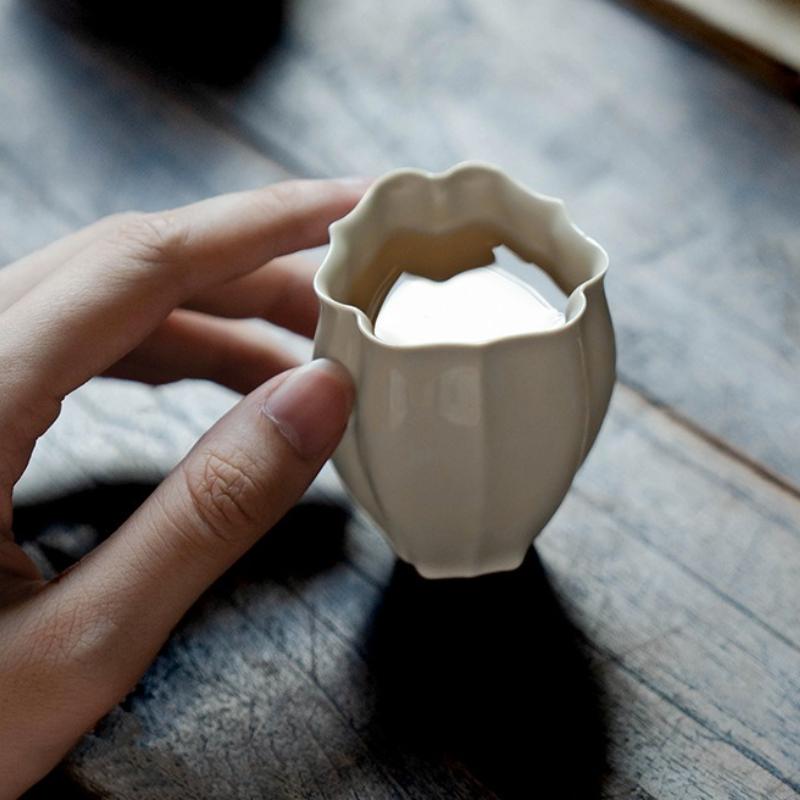 Antique Plain White Lotus Teacup Ancient Plant Ash Petal Smelling Cup Household Tea Ceremony Craft main single cup ceramic tea