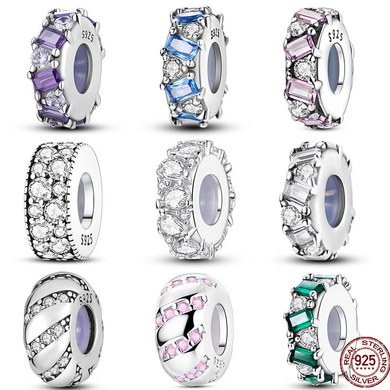 Genuine Copper Charms Beads Colorful Square Zircon Silicone Clip For Women Fits Genuine Bracelet DoItYourself Accessories