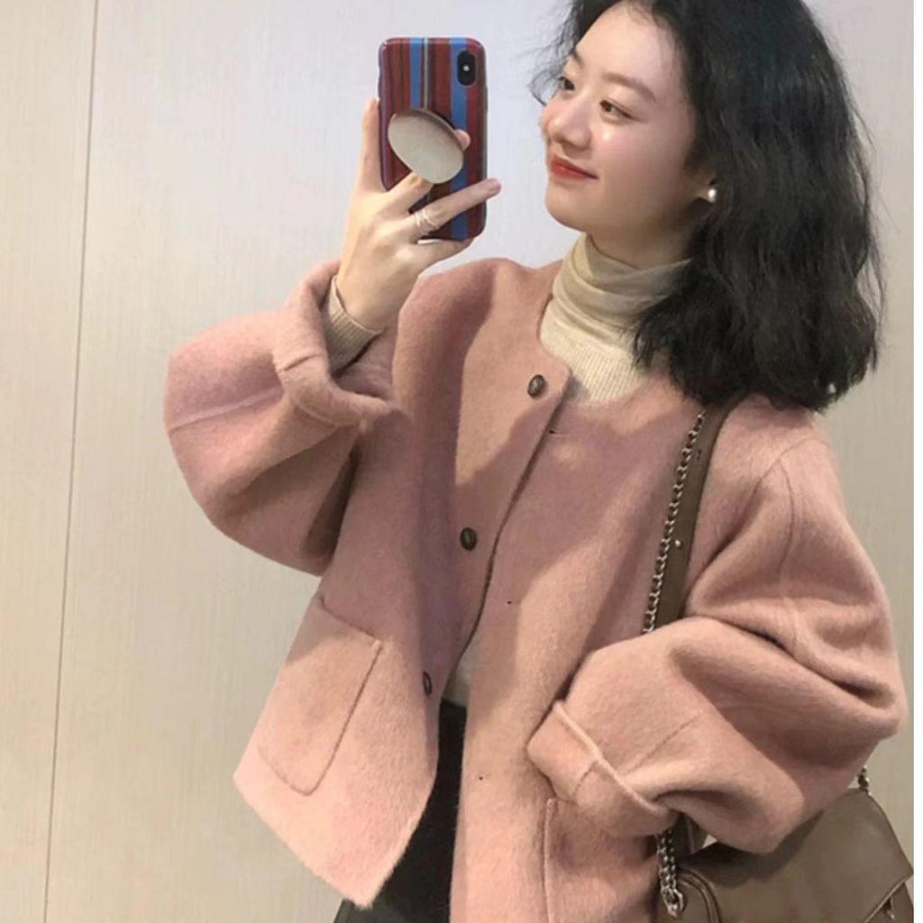 Stay stylish and warm this autumn and winter with this chic high-waisted wool coat. Crafted from quality polyester material, it features a solid pattern and medium outerwear thickness, perfect for those colder seasons. The jacket's long sleeves and round neckline provide a classic touch, while the added pockets offer practicality without sacrificing style. Designed specifically for women, this petite pink coat is both functional and fashionable, making it an ideal addition to your seasonal wardrobe.