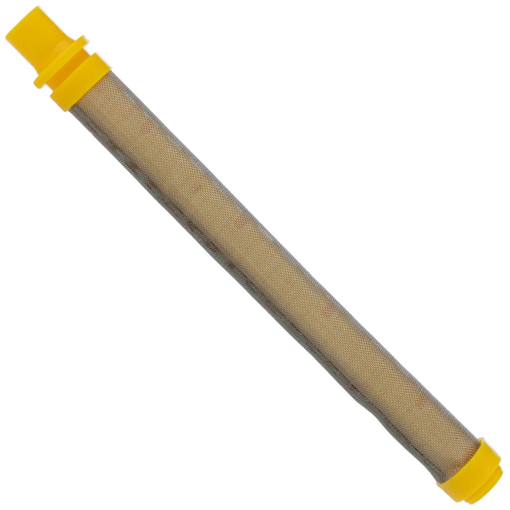 Rosfix Finger Filter 100mesh, yellow for paint sprayer 1pc. Effective filtering: The 100mesh finger filter ensures effective filtering of varnishes, stains and pigments, eliminating impurities and unwanted particles from painting material. Perfect fit: Specially designed for paint sprayers, the filter is perfectly fitted to ensure optimal efficiency and painting quality. Yellow color indicates intended use: Green color indicates that the filter is designed for filtering varnishes, stains, and pigments, making it easier to choose the right filter for a specific type of job. Preventing nozzle clogging: The finger filter helps minimize the risk of nozzle clogging, which translates into even paint atomization and excellent finish quality. Quality and reliability: The filter is made of durable material, which guarantees its reliability and durability during use. ‼ The filters are universal and fit most popular paint guns available on our market, including brands such as WAGNER, TITAN, YATO, POWERMAT and ROSFIX. ‼ Specification: quantity: 1 pc. filter: 100 mesh Areas of application: painting works Material: metal, plastic Length: 100mm Diameter: 10.8mm You will find all 3 types of filters in our offer: 30 mesh filter (green): This filter is designed for heavy latex and facade paints. Thanks to its 30 mesh size, it effectively removes contaminants from these types of paints, ensuring clean and efficient painting work. 60 mesh filter (white): The white 60 mesh filter is ideal for filtering primers, emulsions, latex, and acrylic paints. It protects nozzles from contamination and ensures even distribution of painting materials. 100 Mesh Filter (Yellow): The 100 mesh yellow filter is designed for varnishes, stains, and pigments. Its fine mesh effectively traps the smallest particles, ensuring excellent quality and finish in painting jobs. ‼ Other types of nozzles, guards, hoses, parts for painting units are available in our offer ‼ Nozzle hole range for different types of sprayed material: Pigments: 0.009″ Stains, Varnishes, Oils: 0.009″ – 0.011″ Primer: 0.013'' Urethanes, Epoxies: 0.013″ – 0.015″ Enamels, Emulsions: 0.015″ Acrylics: 0.015″ – 0.019″ Latex: 0.017″ – 0.019″ Exterior, facade paints: 0.021'' – 0.029'' Waterproofing agents: 0.023″ – 0.031″ Multicolor paints for construction: 0.023″ – 0.031″ Fire protection: 0.029″ – 0.035″ Elastomers: 0.025″ – 0.033″ Putties, plasters: 0.027″ – 0.035″ Bituminous masses: 0.055'' – 0.065'' Choosing the right nozzle is child's play with us! Here are a few steps to help you decide: 1⃣ The first digit (A) stands for the width of the nozzle stream , we will label it as "A". By multiplying the first digit "A" x 5 cm, we get the stream width we want to achieve when holding the gun 30 cm from the surface. So mathematically this can be written as: Fan width = A x 5 cm Example: If the first digit "A" is 5, then the fan width is: Fan width = 5 x 5 cm = 25 cm This means that holding the gun 30 cm from the surface will result in a fan width of 25 cm. 2⃣ The last two digits (B) - indicate the nozzle orifice size and paint density. The higher the number, the thicker the paint. For example, "517" is a nozzle with a fan width of 25 cm and a nozzle orifice diameter of 0.017 inch.