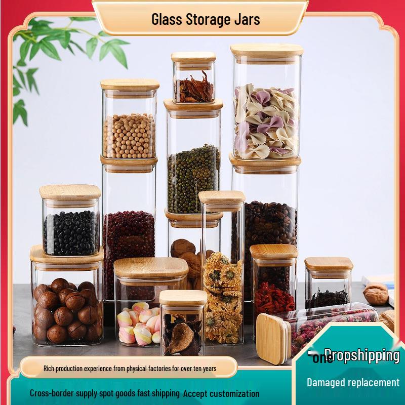 Transparent Glass Storage Jar for Grains & Dried Fruits - Large Capacity, Square & Sealed, Food-Grade Quality.