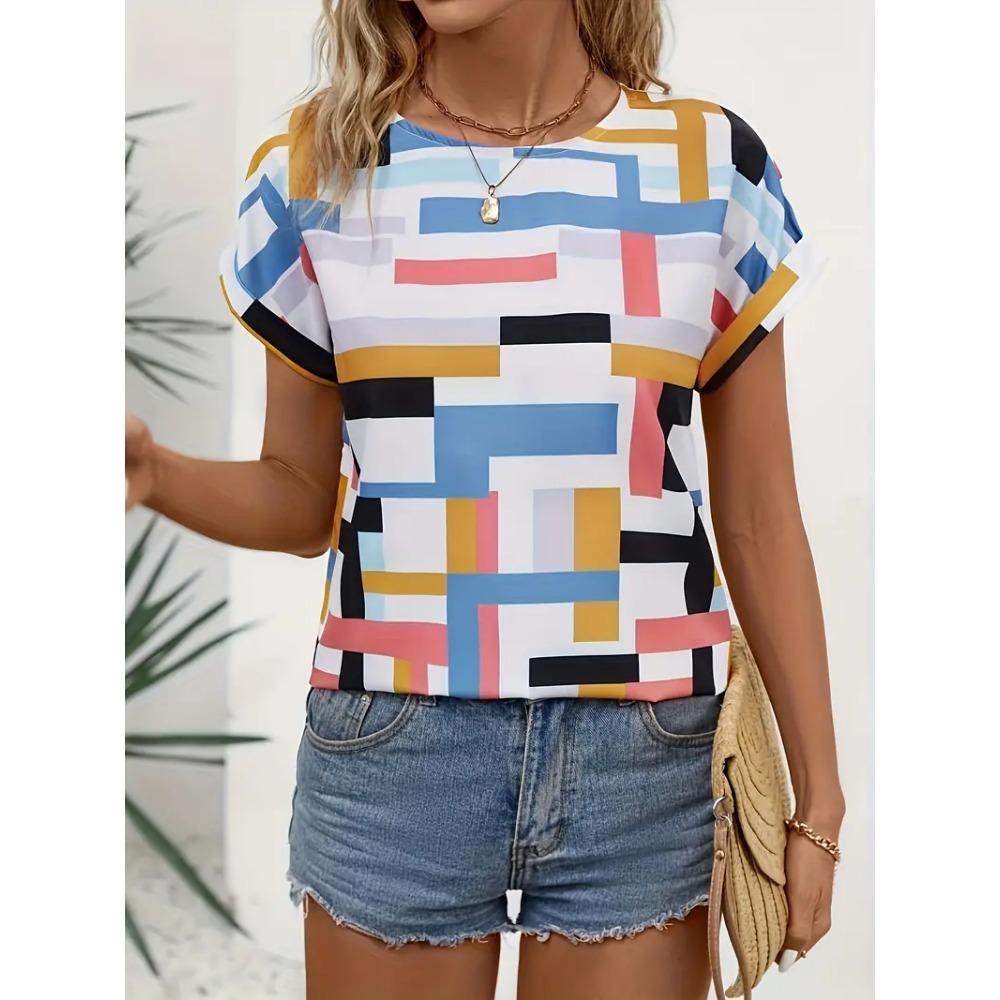 Retro Line 3D Printed Women's T-shirt Street Wear Summer Casual