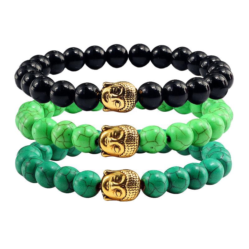Colorful Turquoise Beaded Elastic Bracelet with Alloy Buddha Head