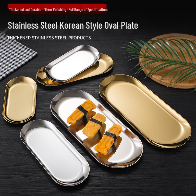 Nordic Korean Style Stainless Steel Oval Tray for Desserts, Jewelry, Towels - Small Gold Plate