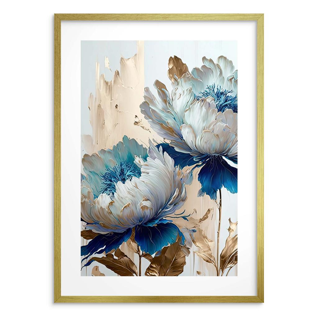 Elegancki Obraz Plakat ścienny Niebiesko Złote Kwiaty na ścianę Glamour