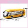 This bus toy model features a durable alloy construction. It operates via inertia, enabling smooth, manual movement, and includes sound and light functions for engaging play. The model is designed for collectors and children, ideal for imaginative scenarios or display. Wipe clean with a damp cloth for maintenance.