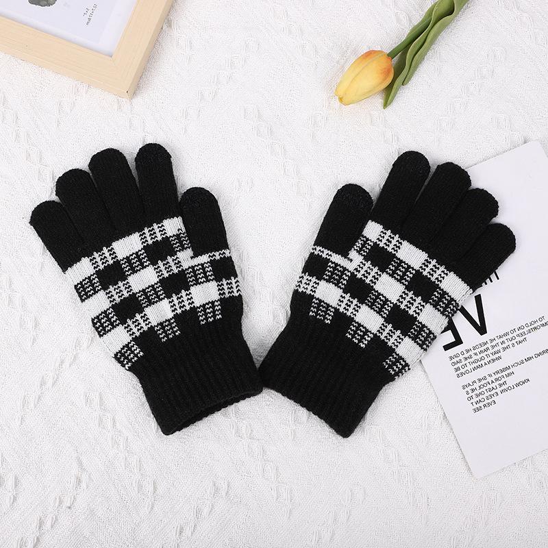 Winter Fashion Retro Plaid Gloves Outdoor Cycling Warm Five-Finger Knitted Gloves