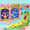 This kids developmental sticker book features reusable paper and bubble stickers designed to enhance creativity and fine motor skills. Measuring 30.5*23.5cm, it includes various themed pages such as space, animals, ocean, and dinosaurs, providing diverse imaginative scenarios.