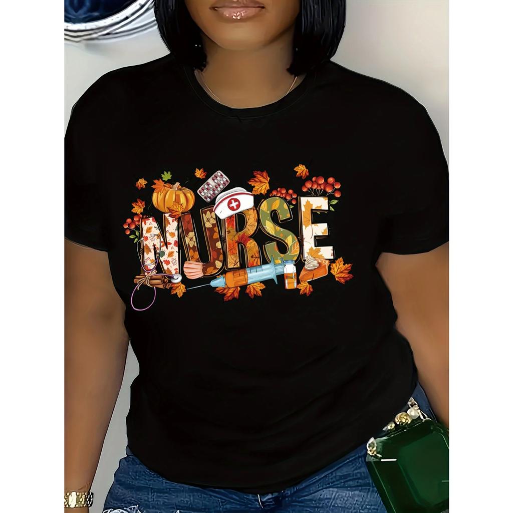 Thanksgiving Nurse-Themed Women's T-Shirt - Casual Short Sleeve Crew Neck Soft Polyester Machine Washable