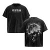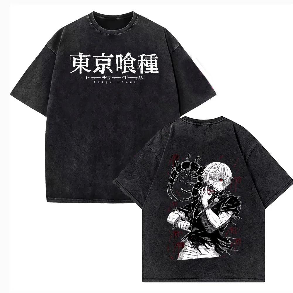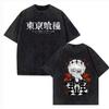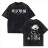 2026 Summer Harajuku Men Women T-shirt Anime Tokyo Ghoul Kaneki Ken Centipede Vintage Washed Cotton T Shirt Streetwear Men Tops Clothing