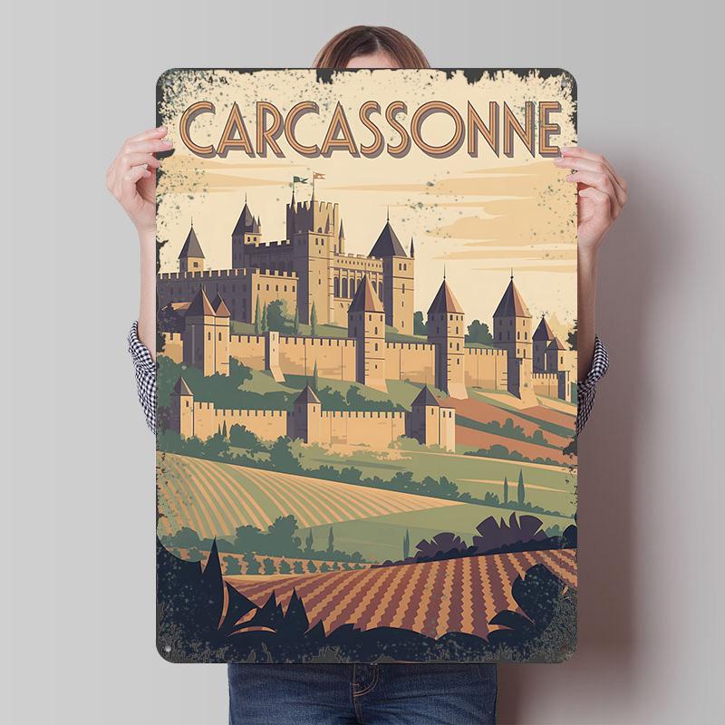Carcassonne Castle Travel Printed Poster Customized Wall Art Retro Vintage Metal Tin Signs for Gamer Decoration Room House Decor