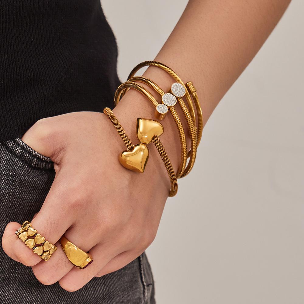 European and American fashion light luxury jewelry bracelet set with zirconia, stainless steel elastic open bangle