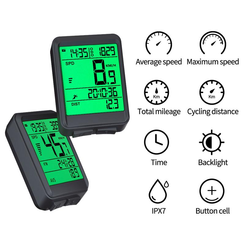 Replaceable Battery 180 Hours Ultra-Long Standby Wireless Bike Computer LCD Auto Backlight for Cycling Realtime Speed Track
