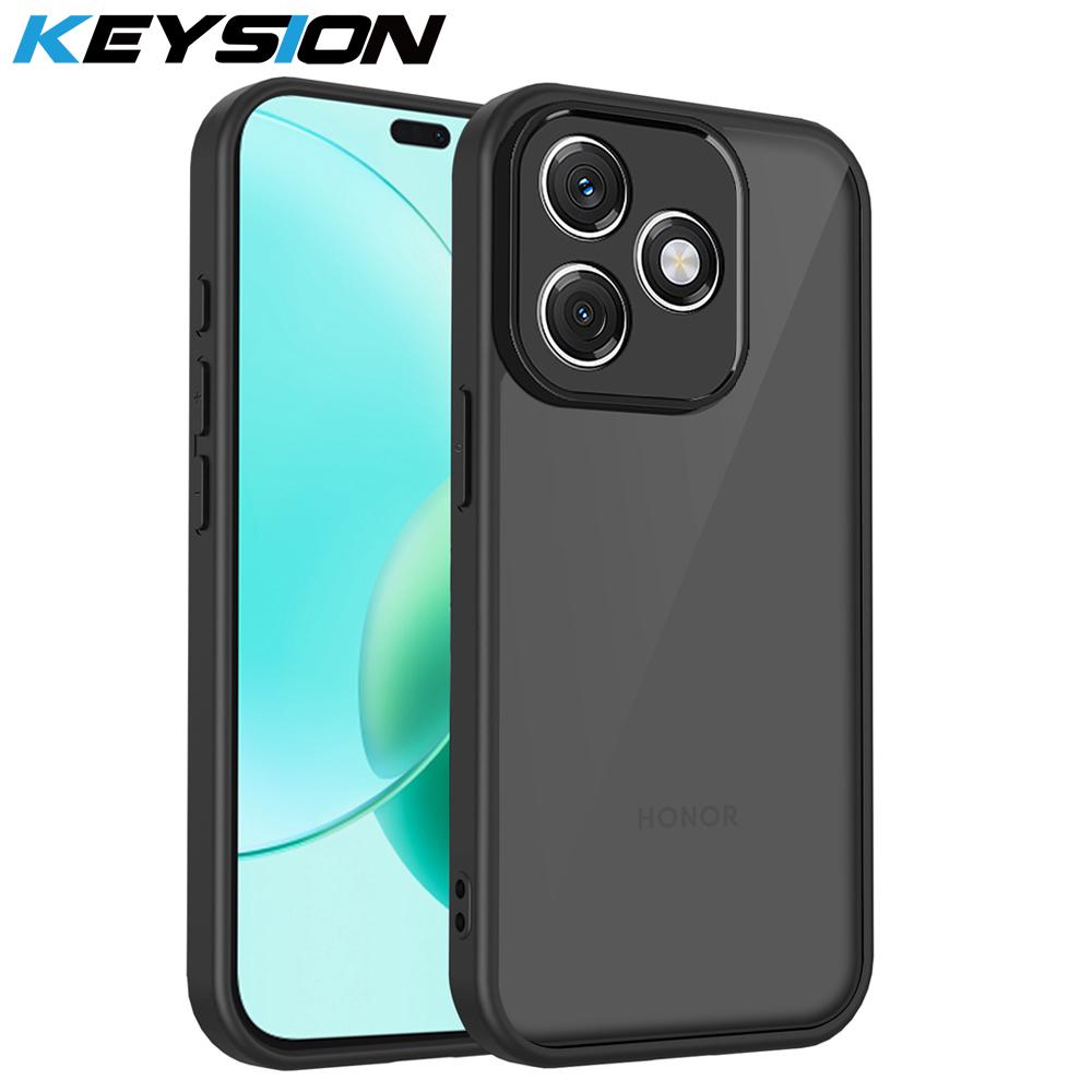 KEYSION Matte Translucent Black Phone Case for HONOR 600 Lite 5G Soft Silicone+PC Anti-slip Shockproof Back Cover for Honor X8d