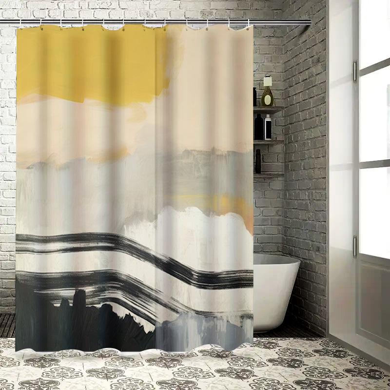 Artistic Shower Curtain DecorModern Black White Yellow Striped Bathroom Accessories Waterproof Fabric with Rings for Home Bath D