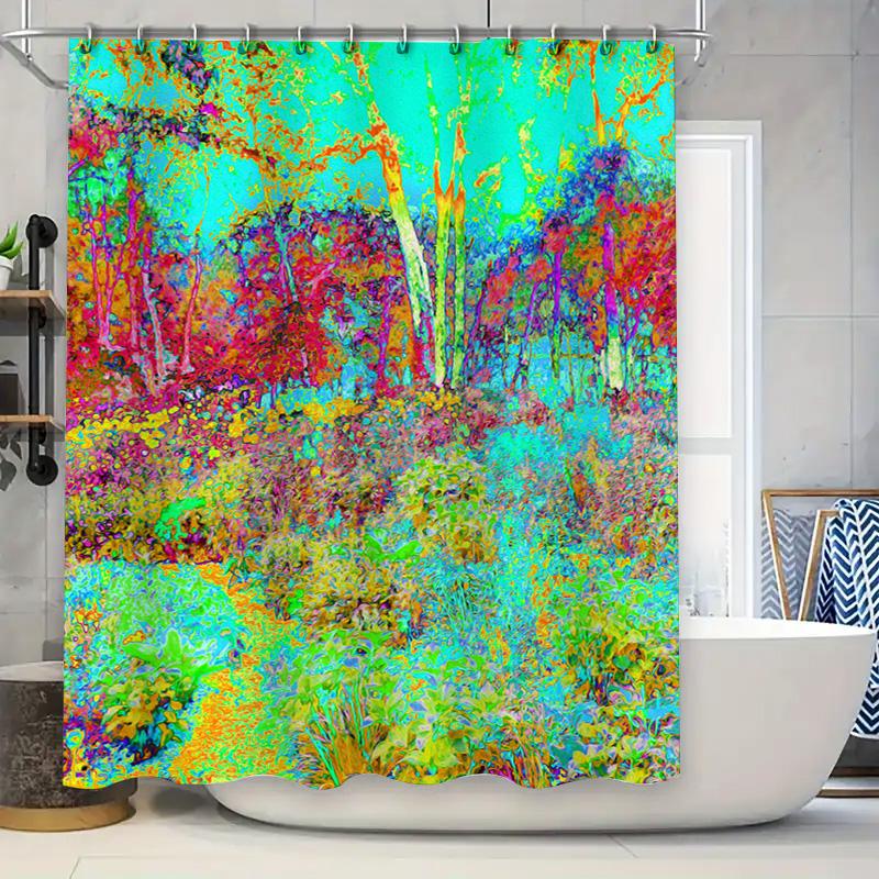 Artistic Shower Curtain with Multicolored Trees: Add a Splash of Color to Your Bathroom Decor (128 characters)