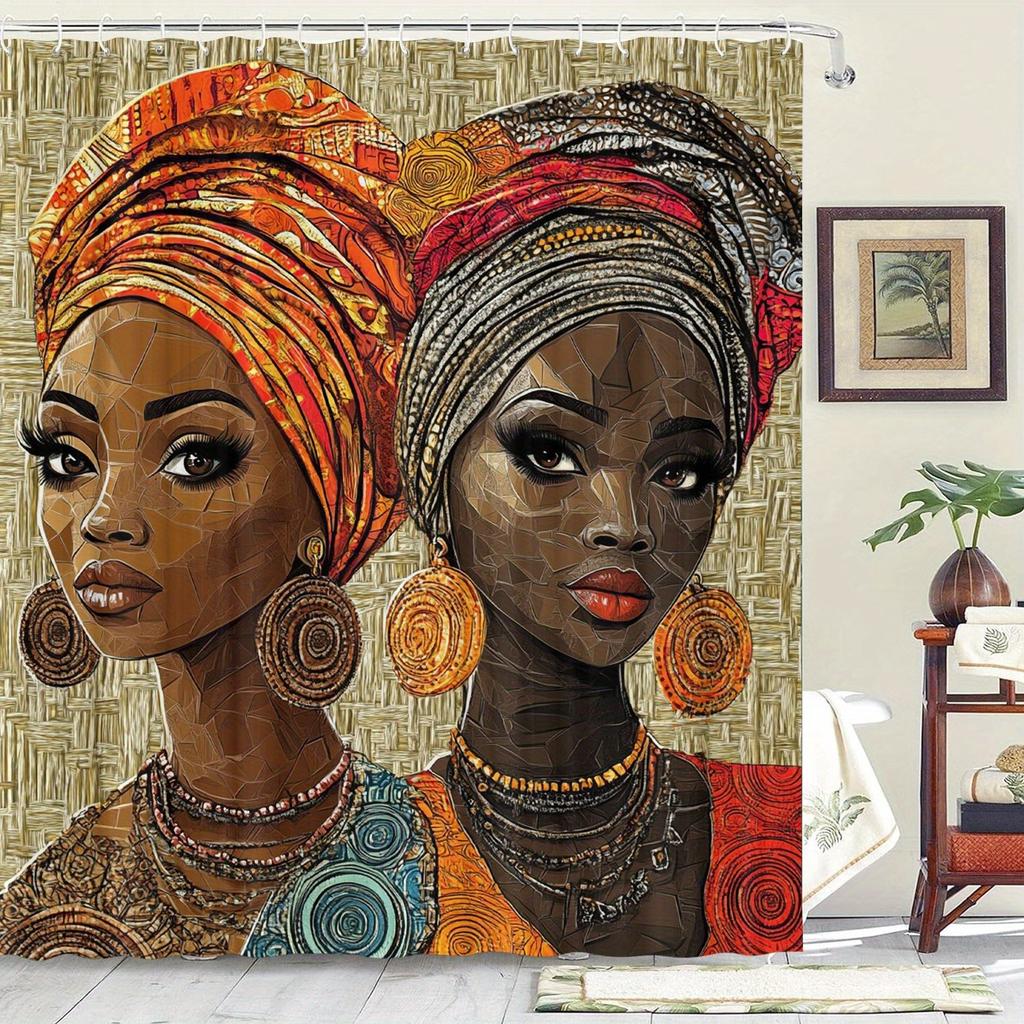 Vibrant African-themed shower curtain: Water-resistant, non-woven fabric, machine washable, Ideal for home and hotel bathrooms.