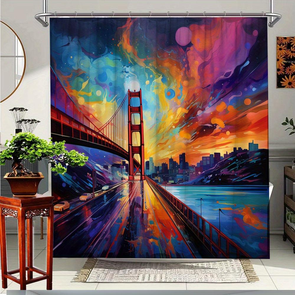 Vibrant Golden Gate Bridge Waterproof Mildew-Resistant Shower Curtain - Artistic Design for a Dynamic Bathroom Décor Experience