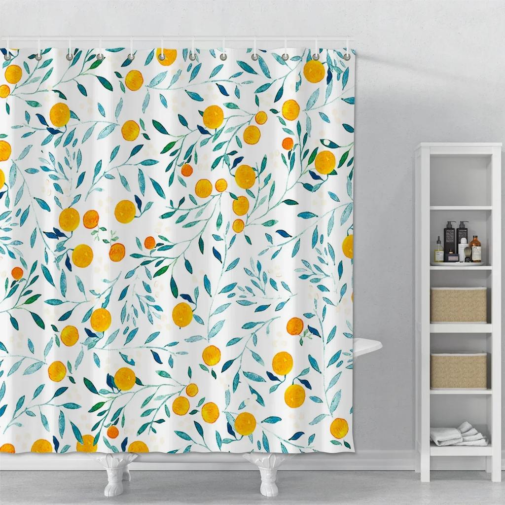 Flowers Leaves Printed Shower Curtain Waterproof Bathroom Shower Curtain With Hooks Polyester Fabric Bath Shower Curtain Decor