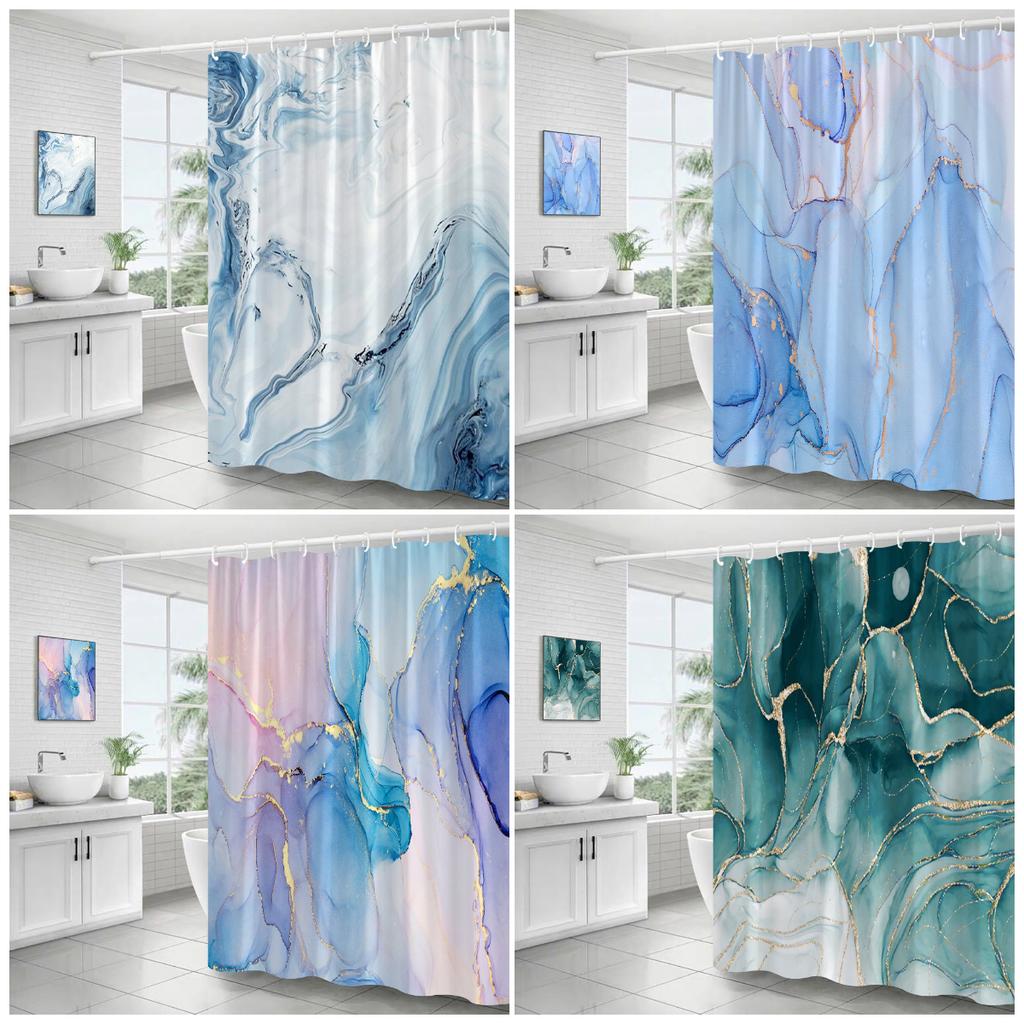 Abstract Blue Marble Shower Curtains Ink Art Textured Pattern Modern Polyester Fabric Home Bathroom Curtain Decor Set With Hooks