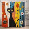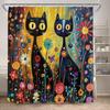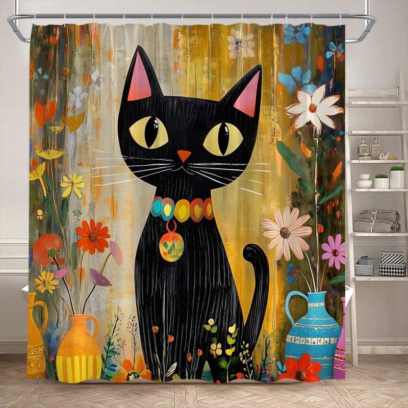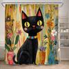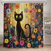 Funny Black Cat Shower Curtains Cute Animal Pet Floral Vintage Painting Art Modern Fabric Home Bathroom Decor Bath Curtain Set