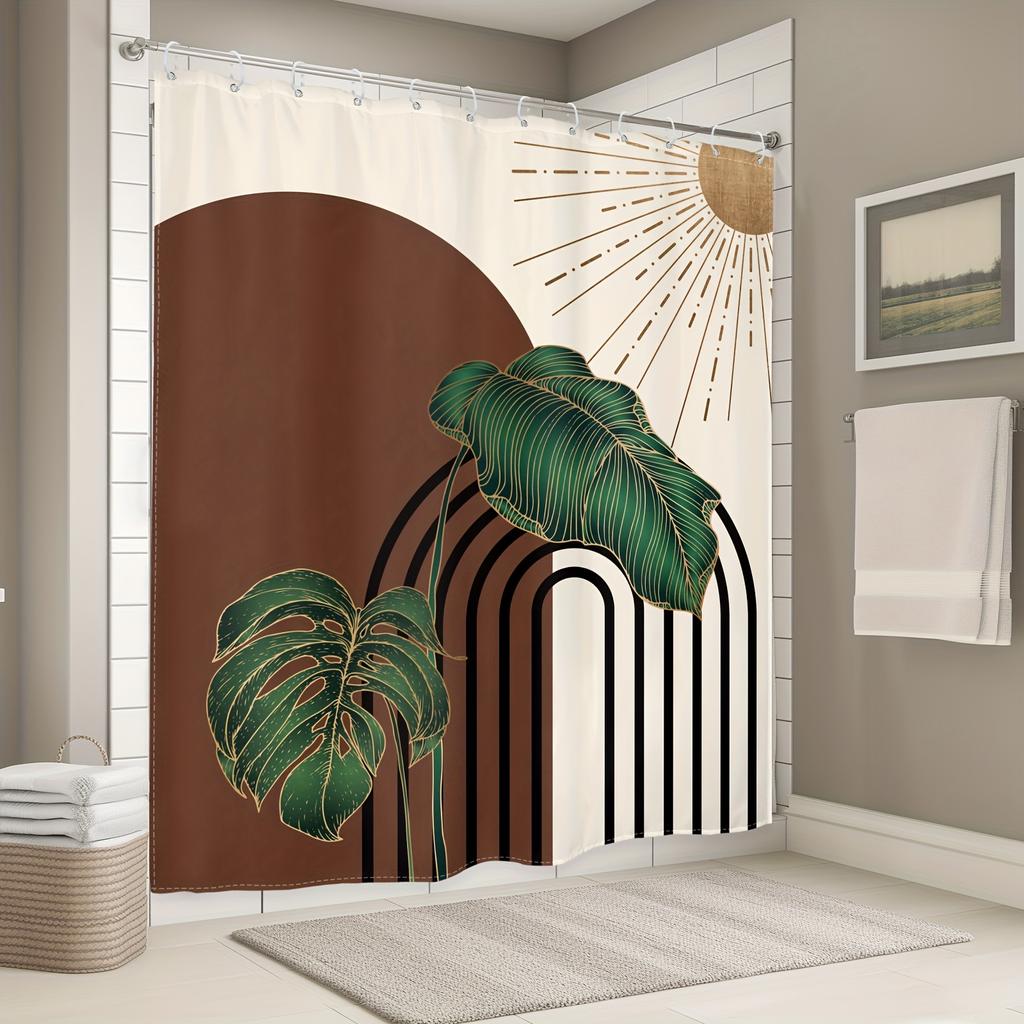 Vintage Abstract Shower Curtain - Mid-Century Tropical Palm Leaf & Sun Design, Minimalist Waterproof Decor,