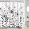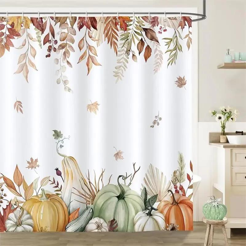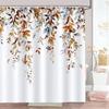 Eucalyptus Leaves Shower Curtain Watercolor Hanging Brown Leaf Pink Floral Fall Bath Curtains Fabric Bathroom Decor with Hooks
