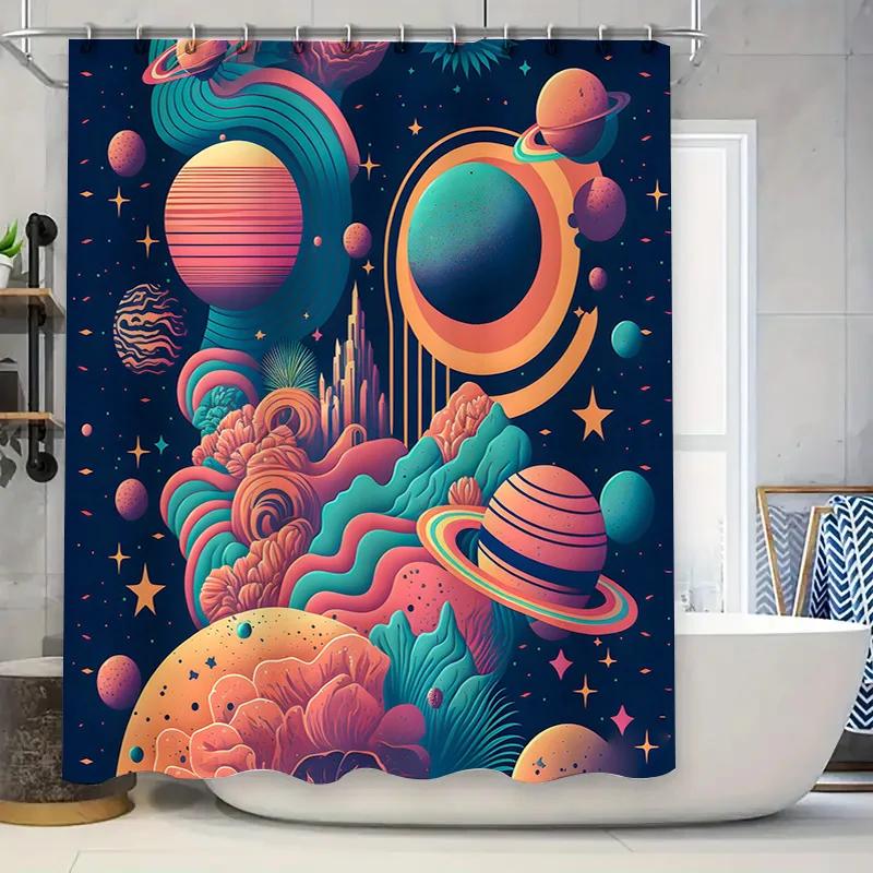 Stylish Space-themed Shower Curtain Cosmic Nebula Design, Non-slip Bath Rug Mat for Bathroom Decoration Available in Multiple Si