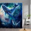 1pc Celestial Whales Bath Curtain - Cosmic Ocean Design with Blue Starry Creatures & Nebula Background, Ethereal Marine