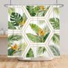 Tropical Rainfores Bathroom Shower Curtain Plant Green Leaves Simple Line Decor Waterproof Bathtub Bathroom Curtain With Hooks