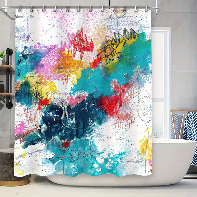Colorful Artistic Shower Curtain Blue, Yellow, Pink Red Splash Design for Bathroom Decor Water-Resistant Fabric Available in Mul