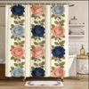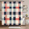 Color Block Plaid Shower Curtain Navy, Coral & Beige Grid Design, Modern Minimalist Pattern for Contemporary Bathroom Decor
