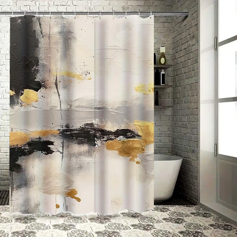Artistic Black Gold Shower Curtain Set for Bathroom Decor Long Water Repellent Fabric Luxurious Home Decoration Items