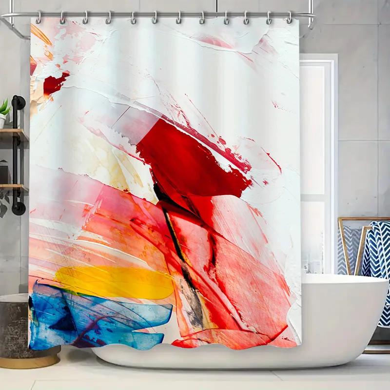 Brightly Colored Bathroom Shower Curtain, Modern Abstract Art Print Watercolor Design in Red, Yellow Blue Colors for Home Decor