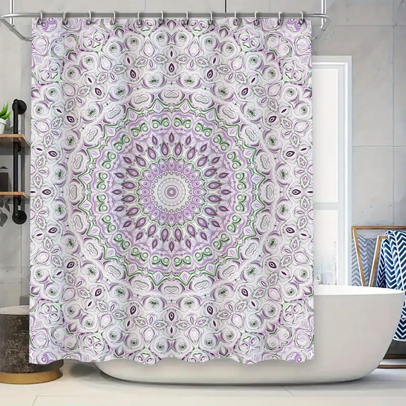 Purple Mandala Shower Curtain: Floral Bathtub Bathroom Decor for Home Waterproof Fabric Bath Linen Sets DIY Room Accessories Gre