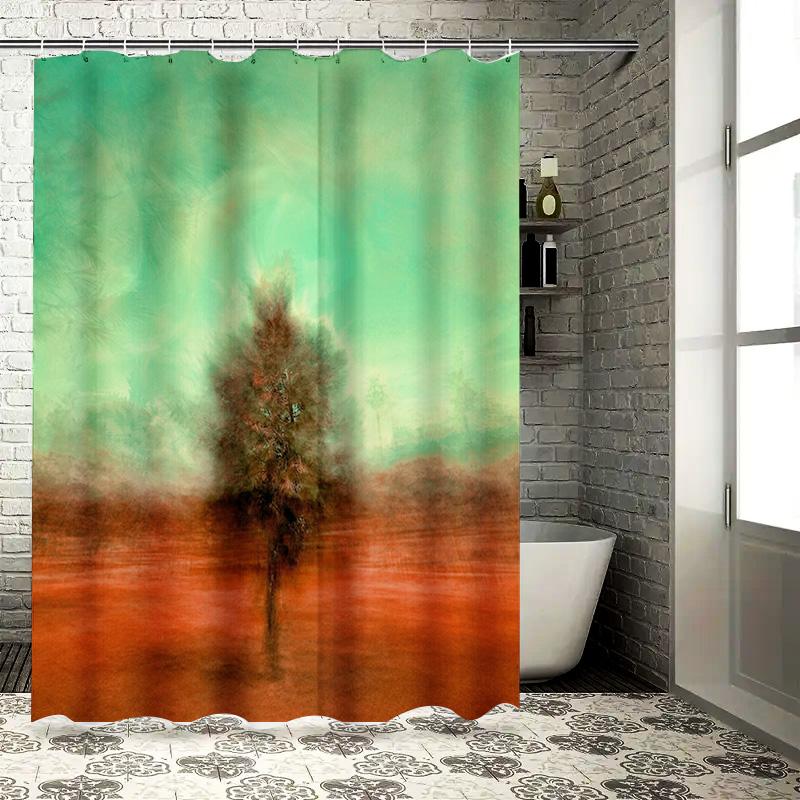 Green Earthy Shower Curtain with Abstract Artistic Design for Bathroom Decorations Orange Red Colorful Print