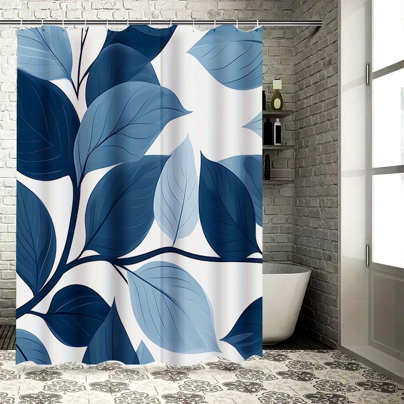 Blue Leaf Pattern Shower Curtain for Bathroom - Waterproof and Durable with Modern Design Waterproof Polyester Durable Fabric