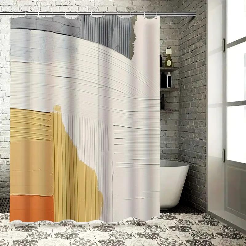 Modern Style Textured Shower Curtain Waterproof Fabric Bath Decoration Decorative Printing White Yellow Orange Black Gray Bathtu
