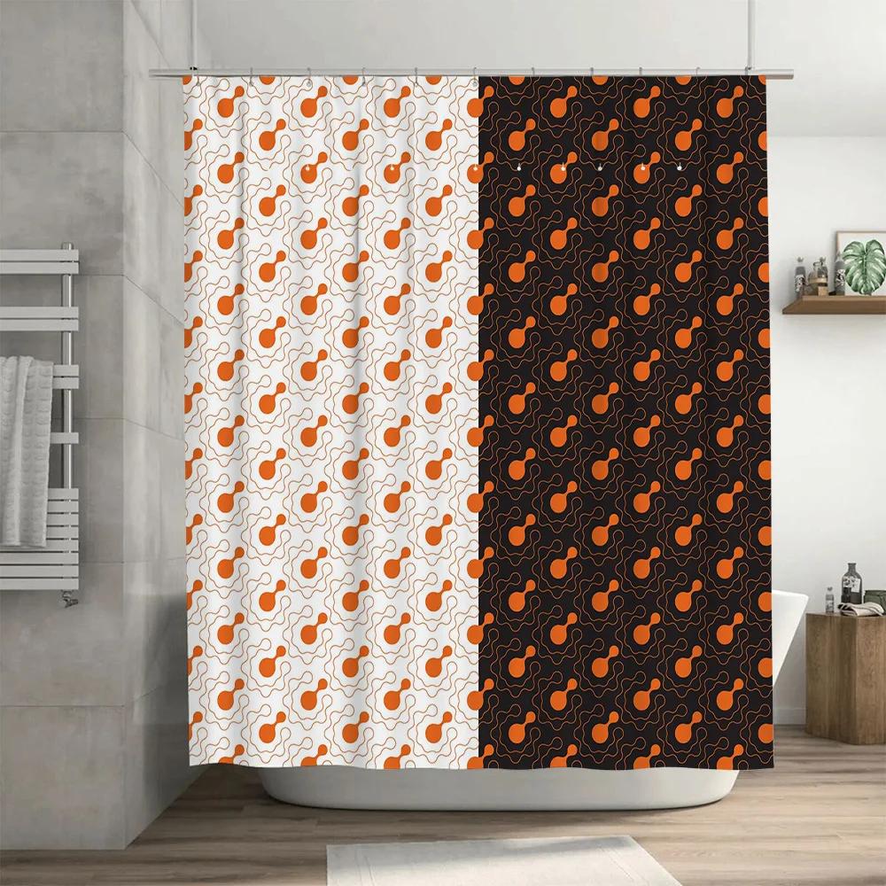 Orange White Shower Curtains with Black Gold Geometric Pattern for Bathroom Decor Modern Printed Fabric Shower Panels