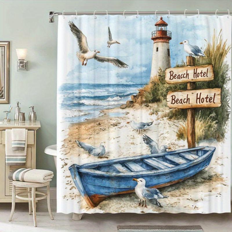 Coastal Nautical Scene Shower Curtain - Water-Resistant Fabric for Bathroom - Perfect for Beach and Sea Enthusiasts