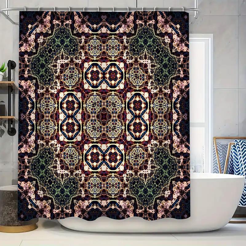 Luxury Floral Bathroom Shower Curtain Boho Decorative Waterproof Fabric 3D Printed Bath Mat Home Decoration in Multi Colors Size
