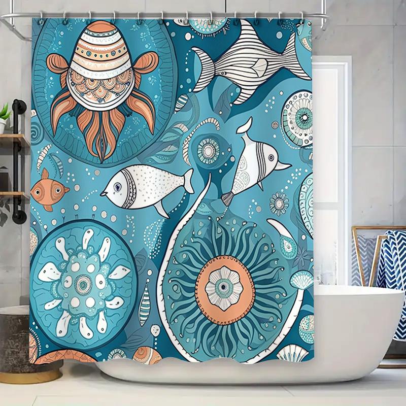Decorative Octopus Fish Blue Shower Curtain Unique Artistic Design for Bathroom Decorations