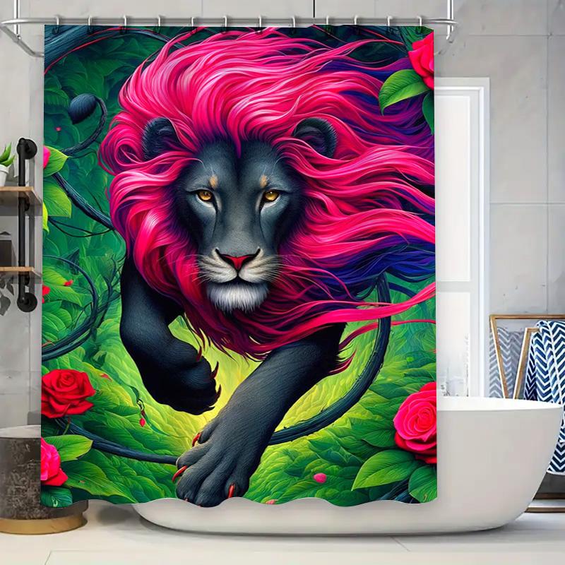 Enchanting Lion Shower Curtain Multicolor Fantasy Art Decorative Bath Mat Cover for Bathroom Accessories in Kitchen Dining