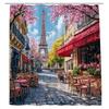 French Paris Eiffel Tower Shower Curtain Oil Painting European City Street Landscape Modern Romantic Vintage Scenery Pink Floral