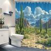 1pc Desert Landscape Saguaro Cacti Shower Curtain - Southwest Bathroom Decor with Rocky Terrain & Blue Sky Digital Art, Durable